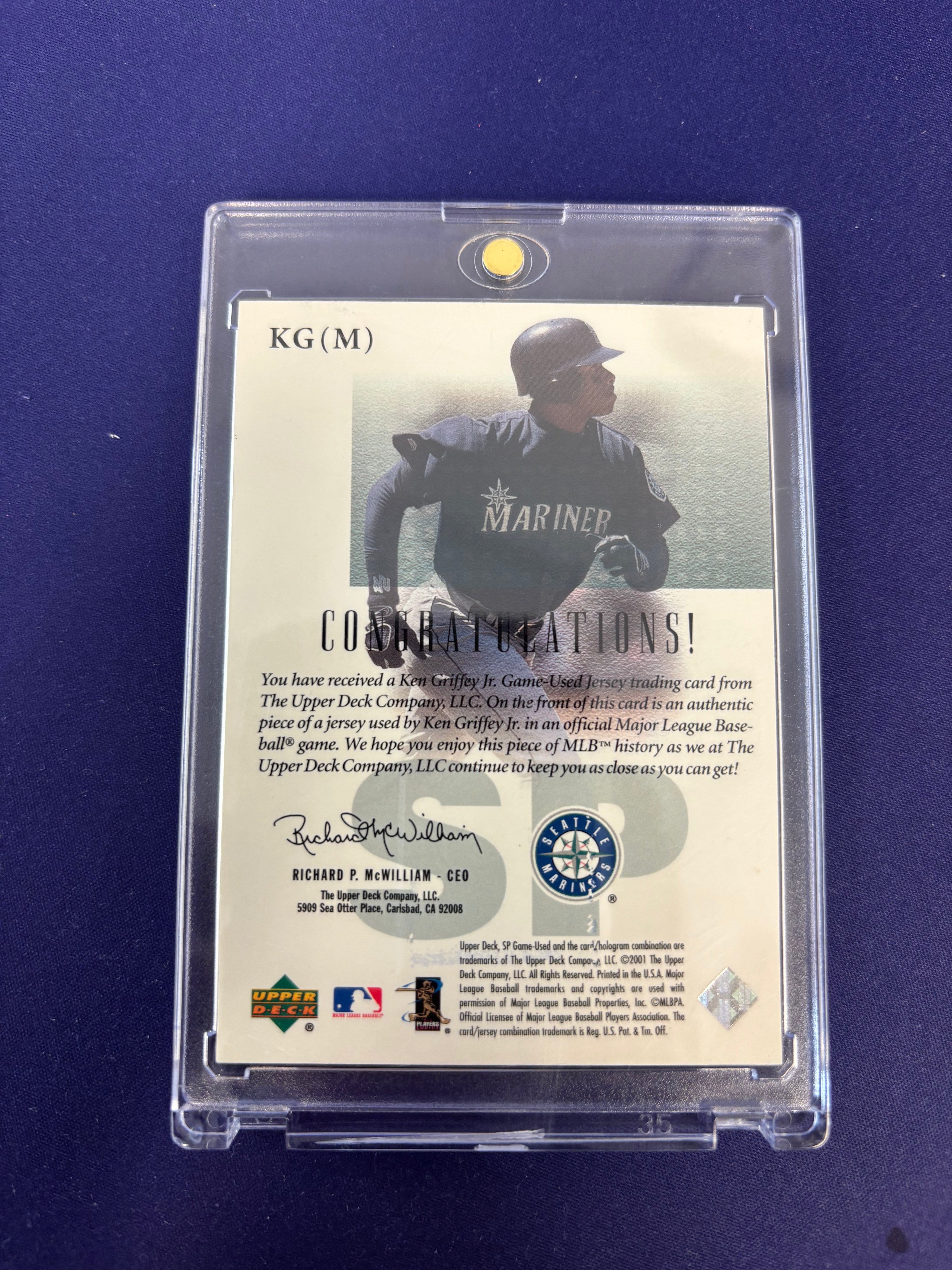 Ken Griffey Jr Authentic Fabric Game Edition 2001 Upper Deck